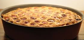 Enfournez pour 20 minutes. Sortez le clafoutis du four et parsemez-le de sucre roux. Enfournez à nouveau pour 10 minutes Servez tiède ou froid.