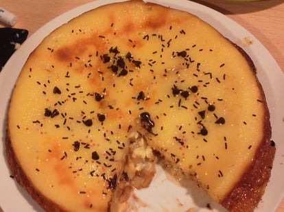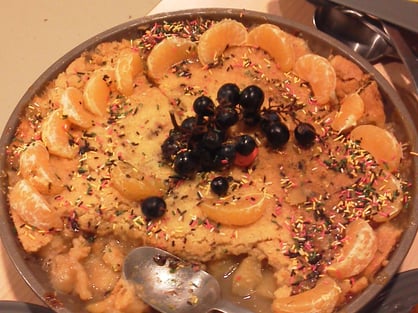 Au bout de 25 min, quand la gâteau commence à lever et dorer, arroser le de la crème et terminer la cuisson pendant 15 min.