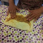 Une fois la crêpe garnie plier la crêpe deux dans un sens et en deux dans l'autre sens.