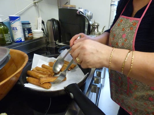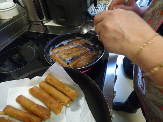 Une fois les roulés frits, les enduire de la préparation de miel.