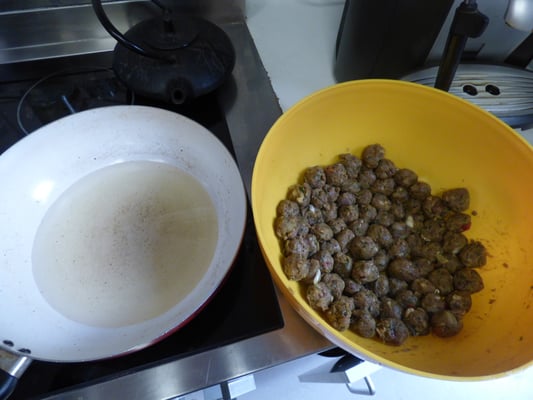 Faire revenir les boulettes dans une poêle avec de l’huile.