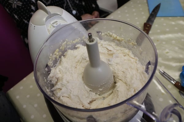 Préparation de la farce : pâte d’amande, cannelle, sucre et de l’eau de fleur d’oranger.