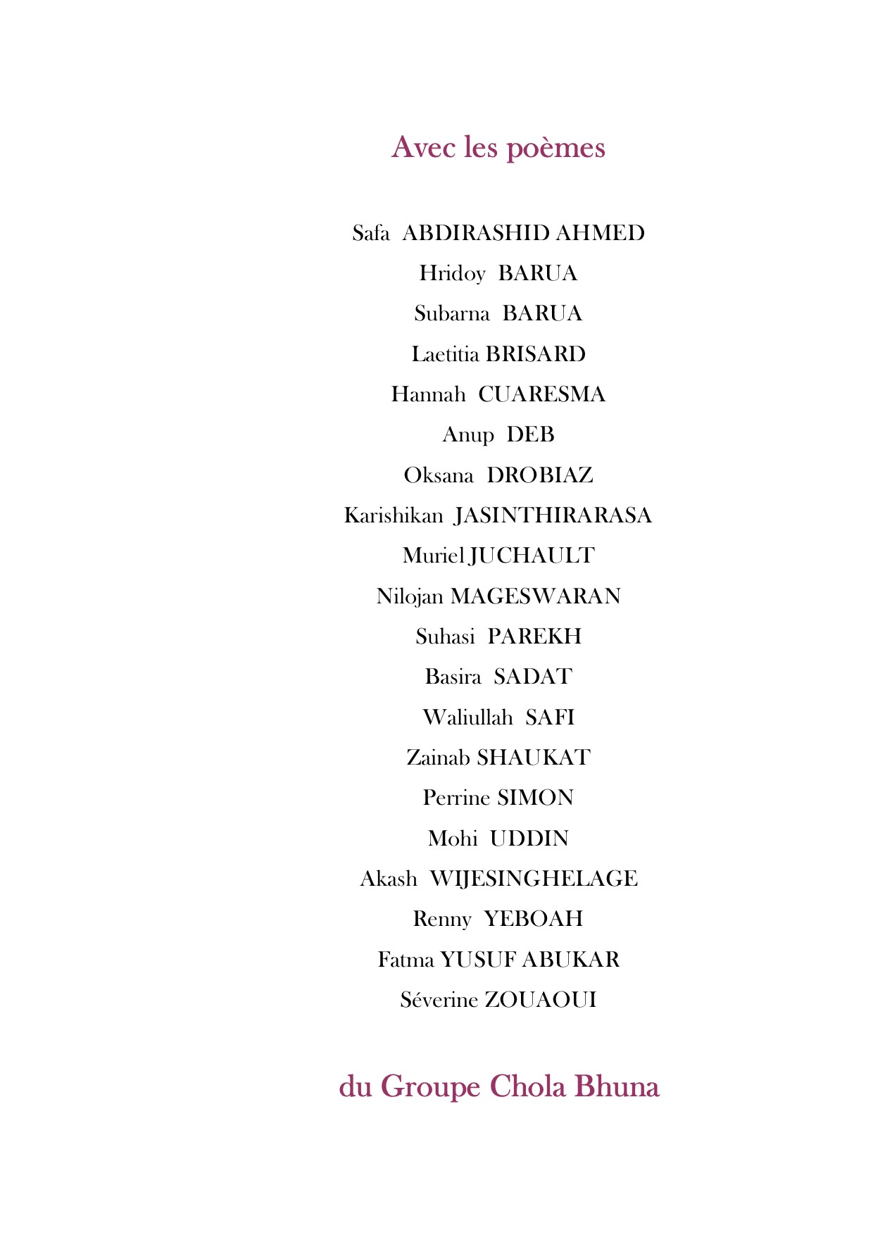 Si vous souhaitez télécharger le livret de l'atelier d'écriture du groupe CHOLA BHUNA